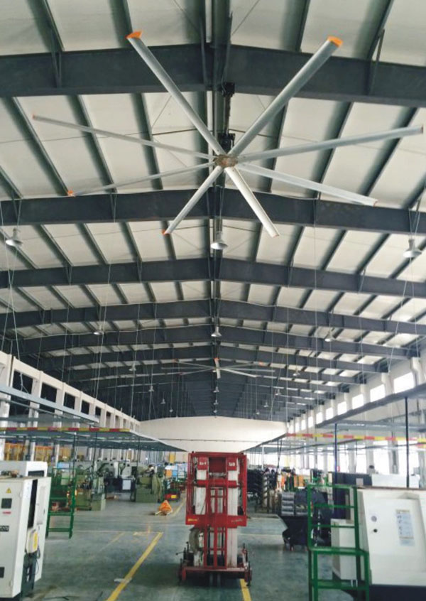 大型工業吊扇直徑達5-7米,功率為1.5千瓦,風力柔和、無噪音,能滿足200-500平方米的室內降溫、通風等要求。